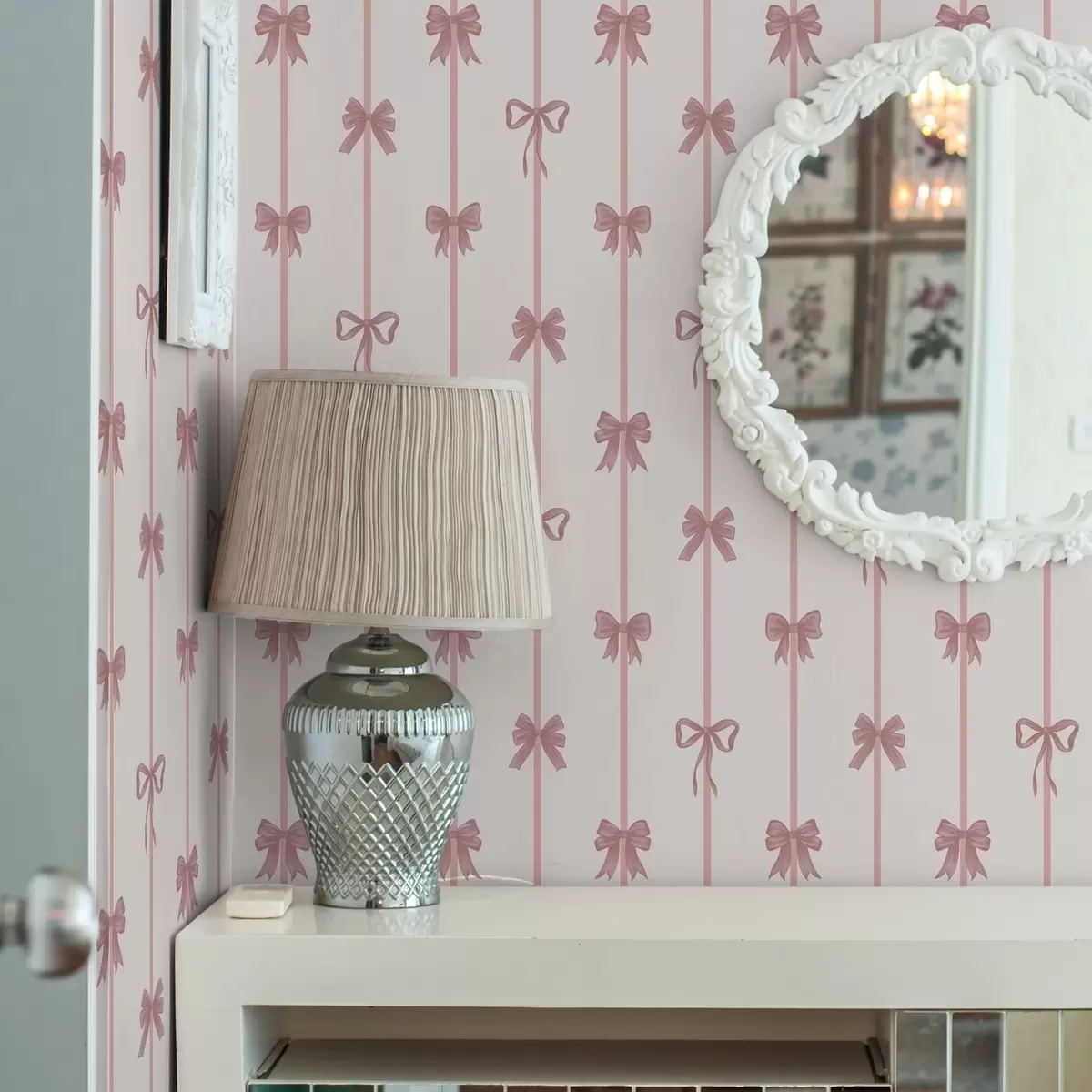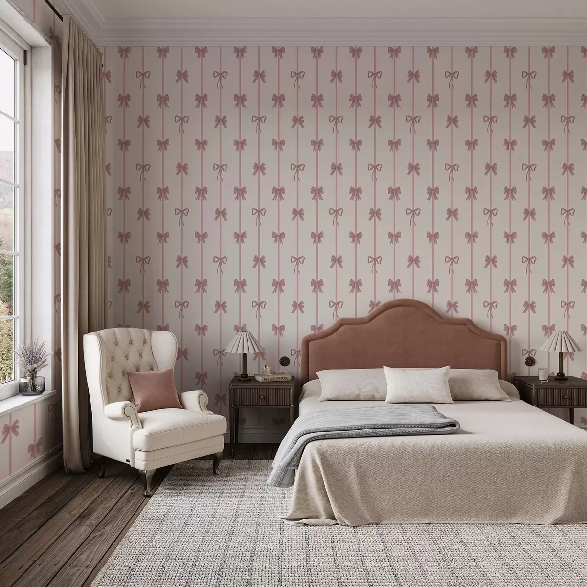 Papel pintado Lazos rosas con cintas sobre un fondo claro Nr. a01074