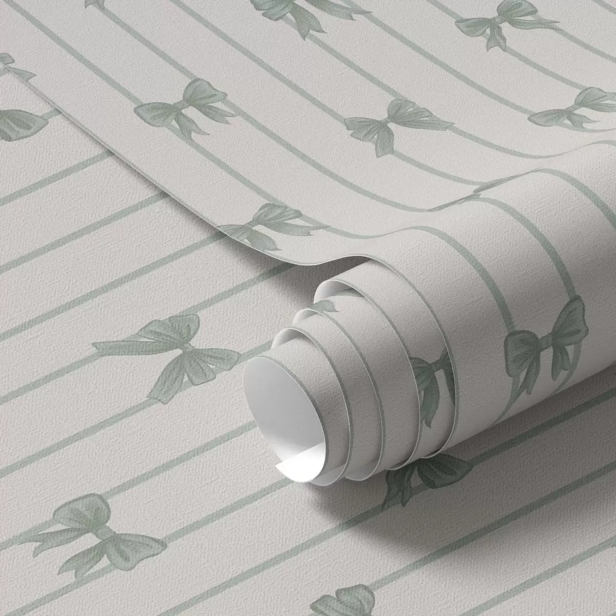 Papel pintado Pequeños lazos verdes a rayas sobre fondo beige Nr. a01076v2