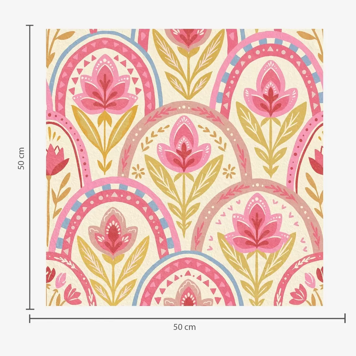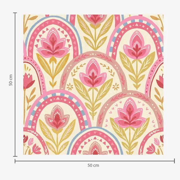Papel pintado Arcos con flores rosas en un diseño de estilo folclórico. Nr. a01080