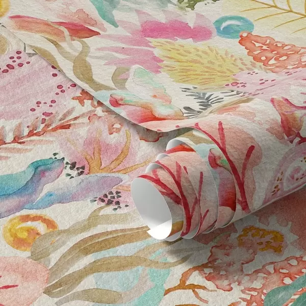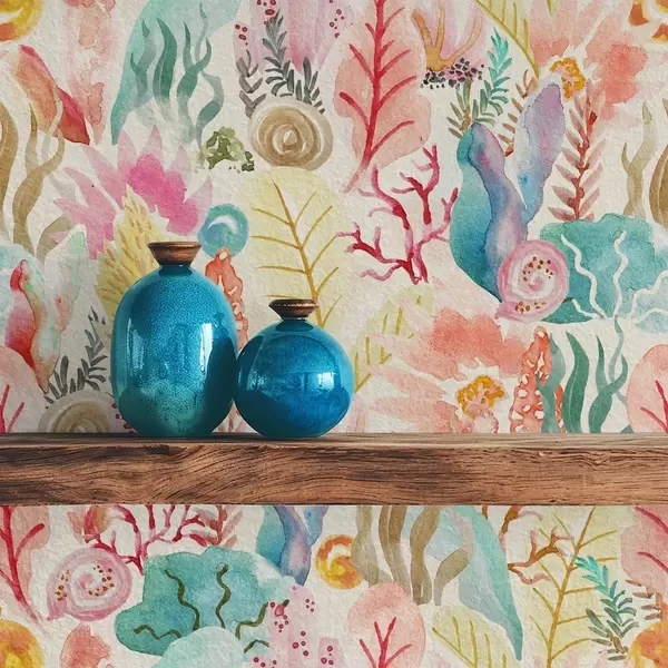 Papel pintado Acuarela de jardín submarino con corales y algas marinas Nr. a01083