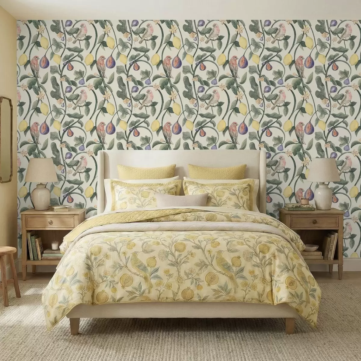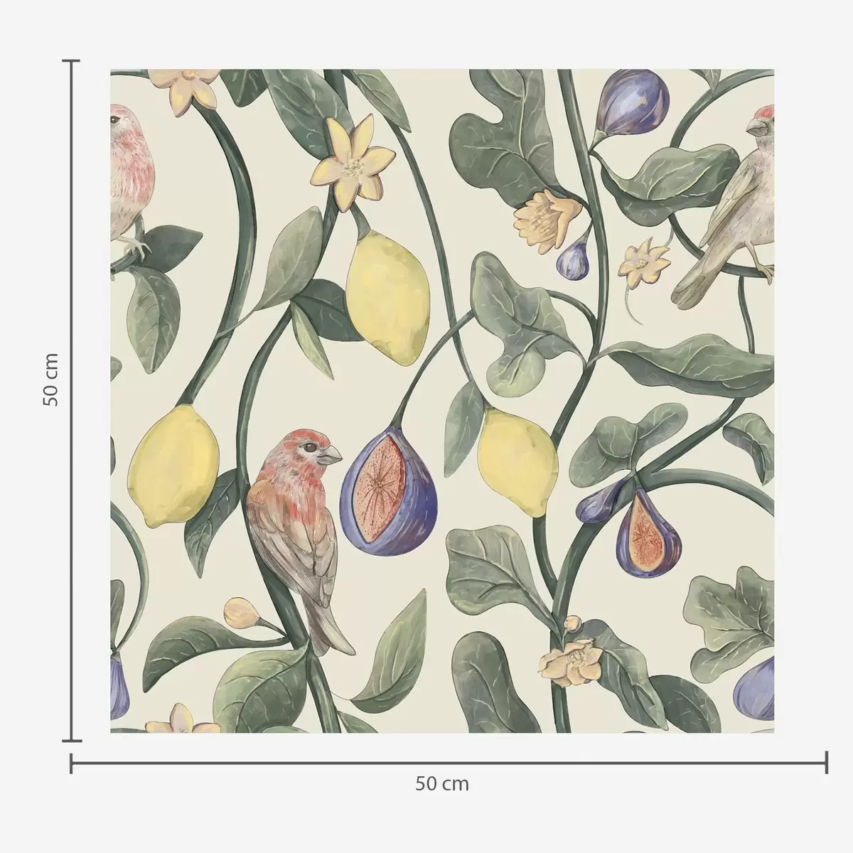 Papel pintado Pájaros entre hojas y frutos Nr. a01107