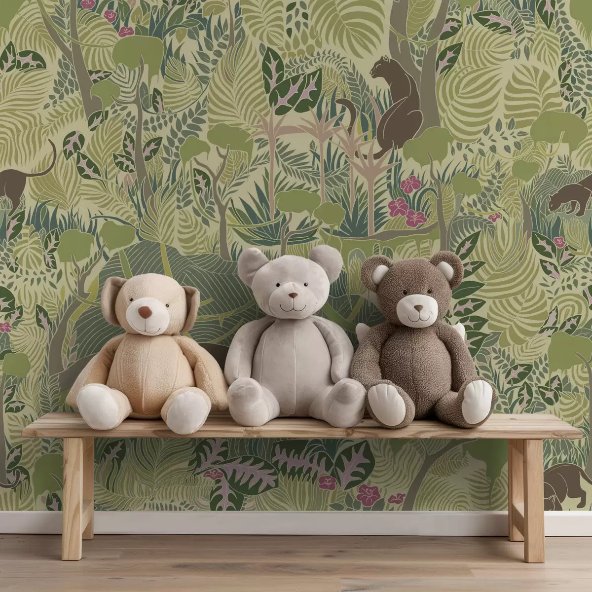 Papel pintado Escena forestal con animales y follaje denso Nr. a01108