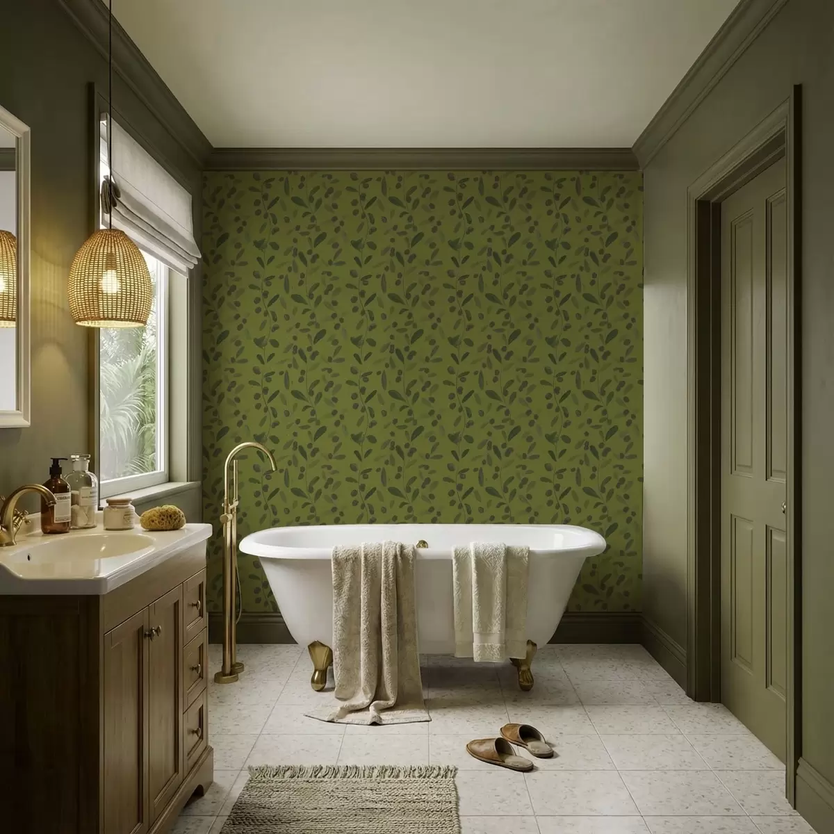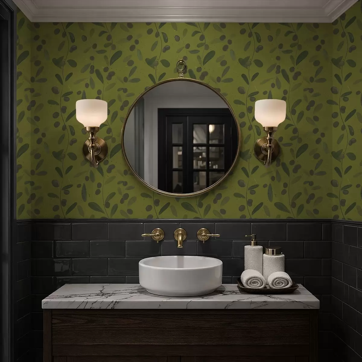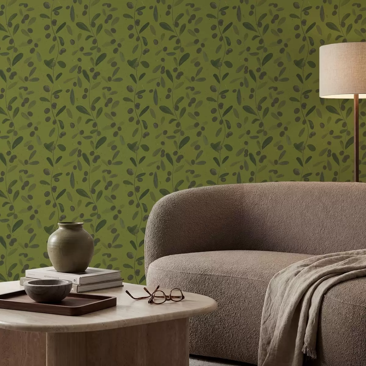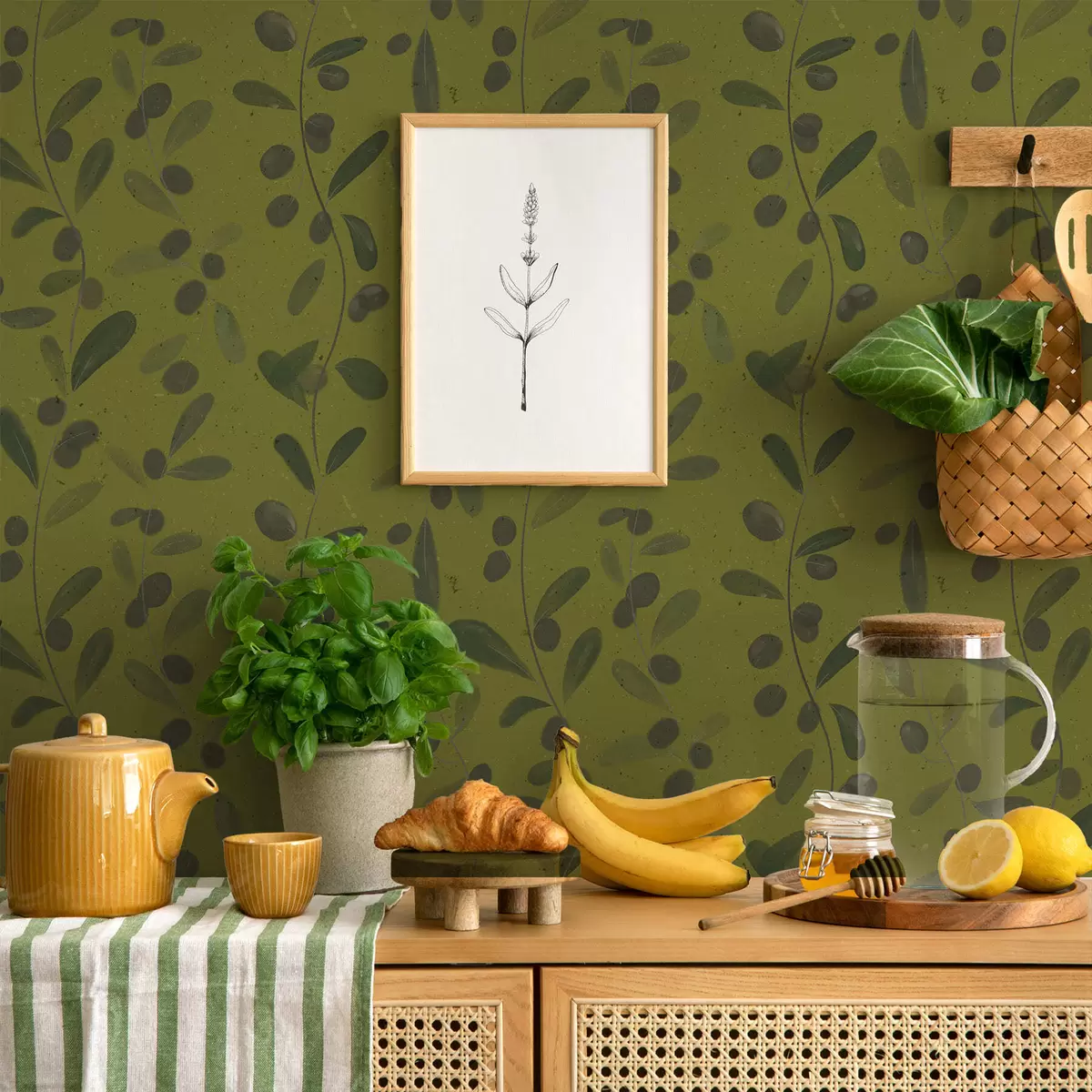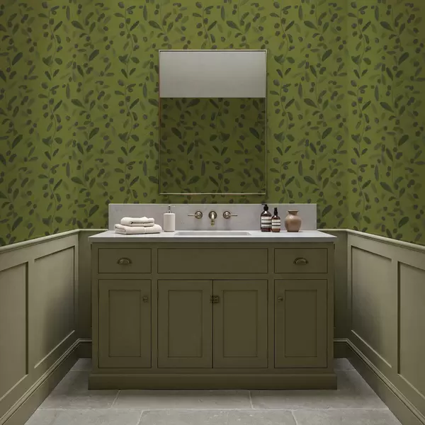 Papel pintado Ramas verdes con hojas y bayas en olivo Nr. a01113