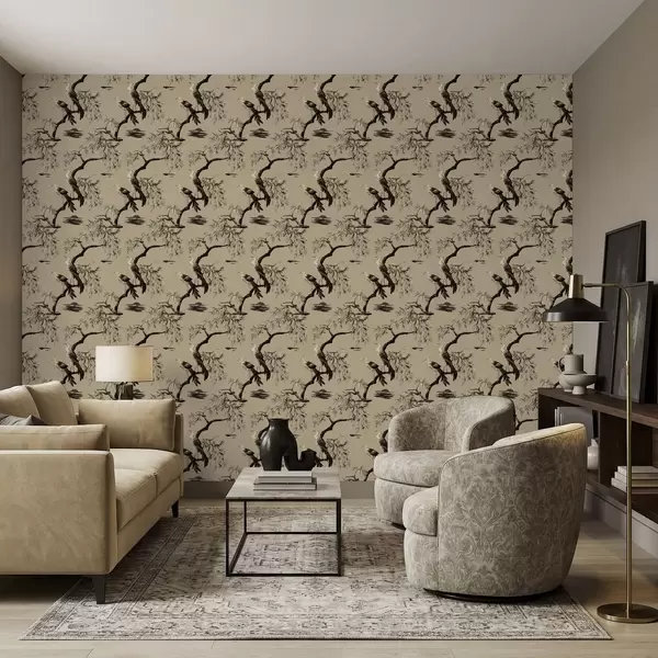 Papel pintado Pájaros en una rama en tonos monocromáticos Nr. a01116v2