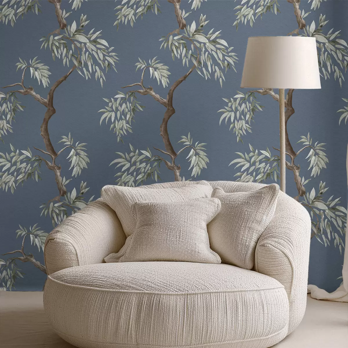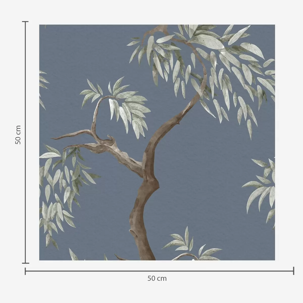 Papel pintado Rama de árbol con hojas sobre fondo azul Nr. a01117