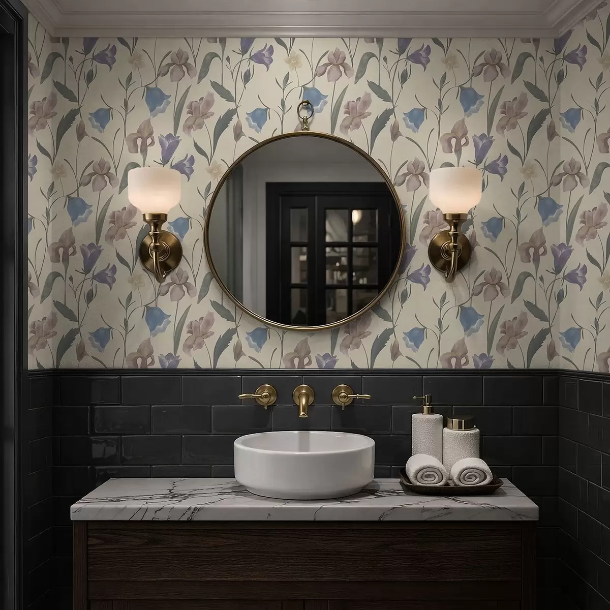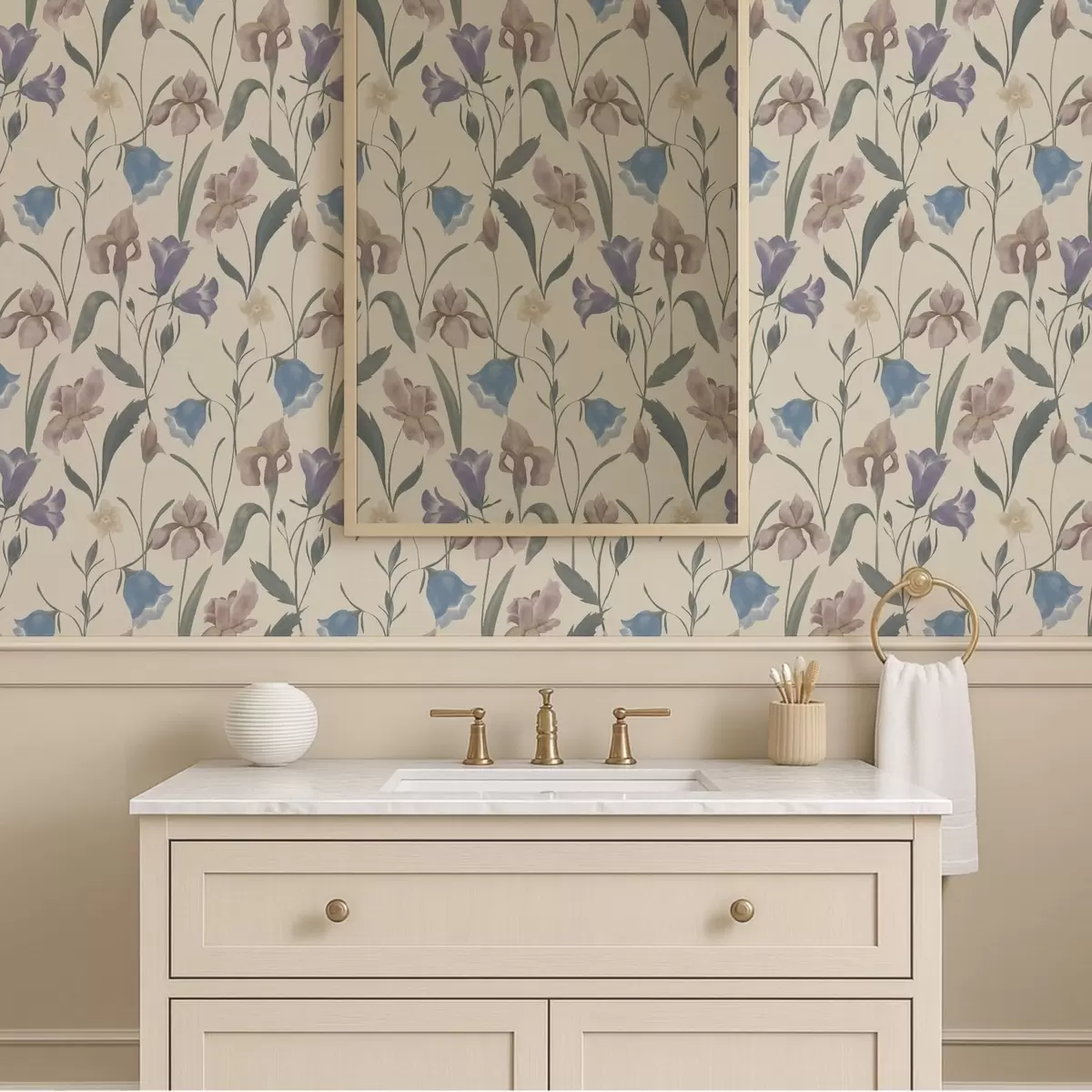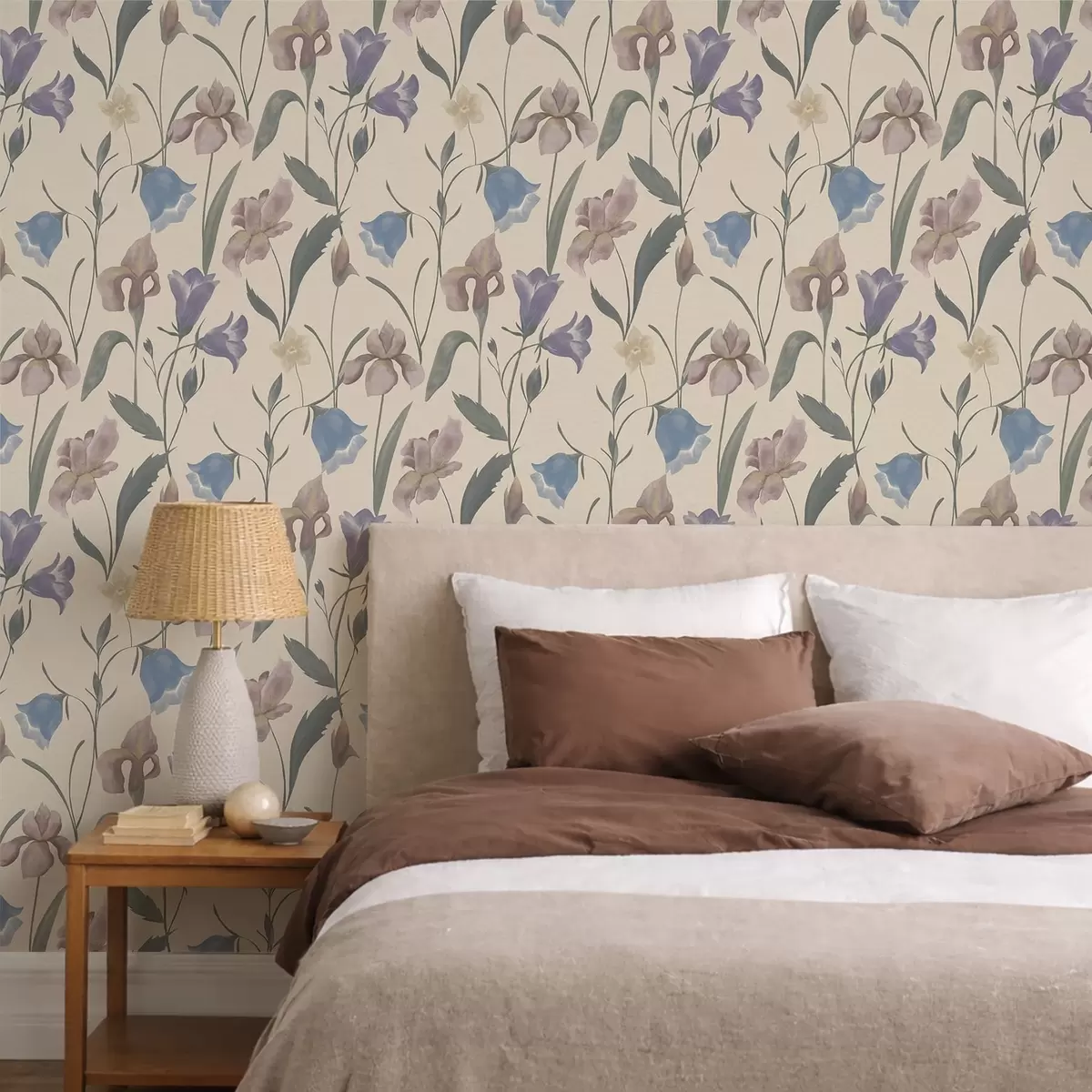 Papel pintado Estampado floral en tonos pastel sobre fondo claro. Nr. a01118