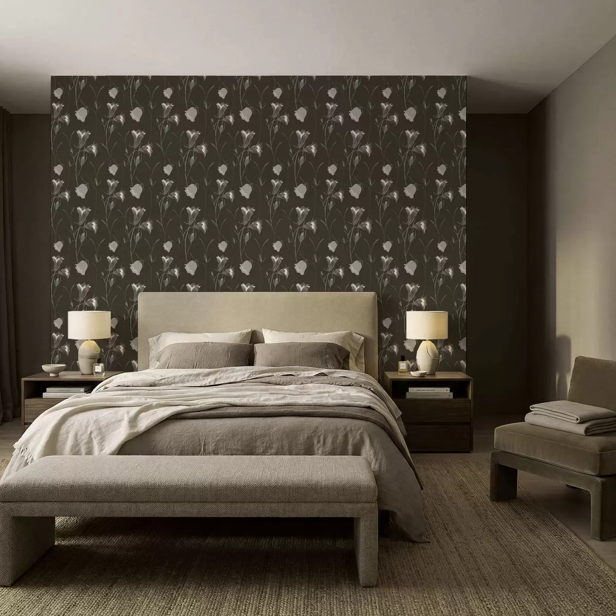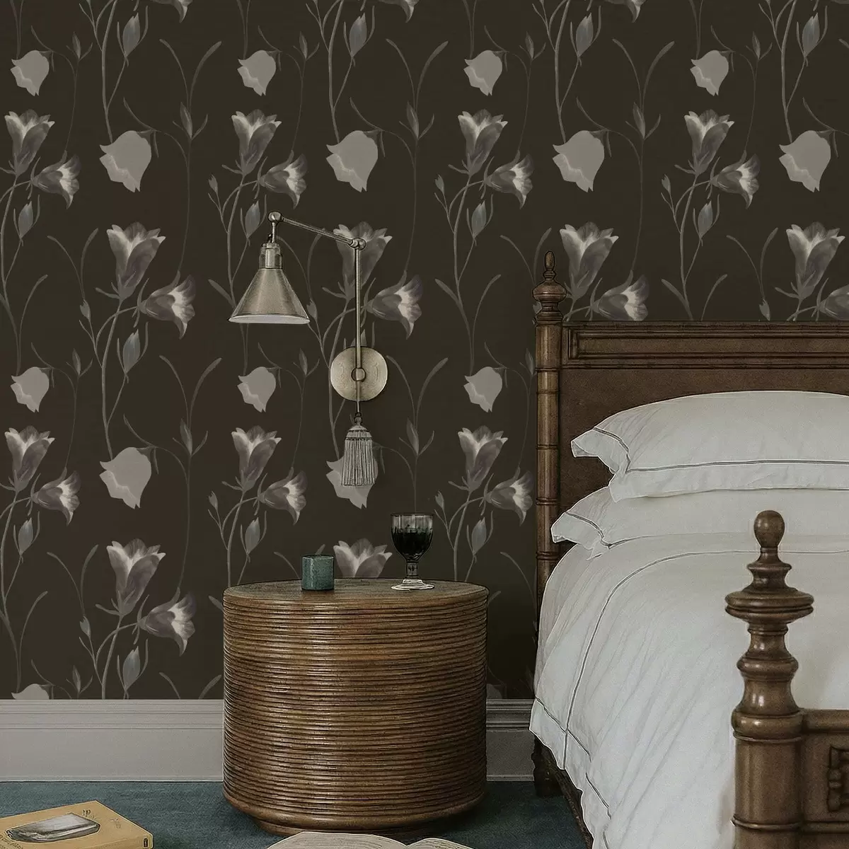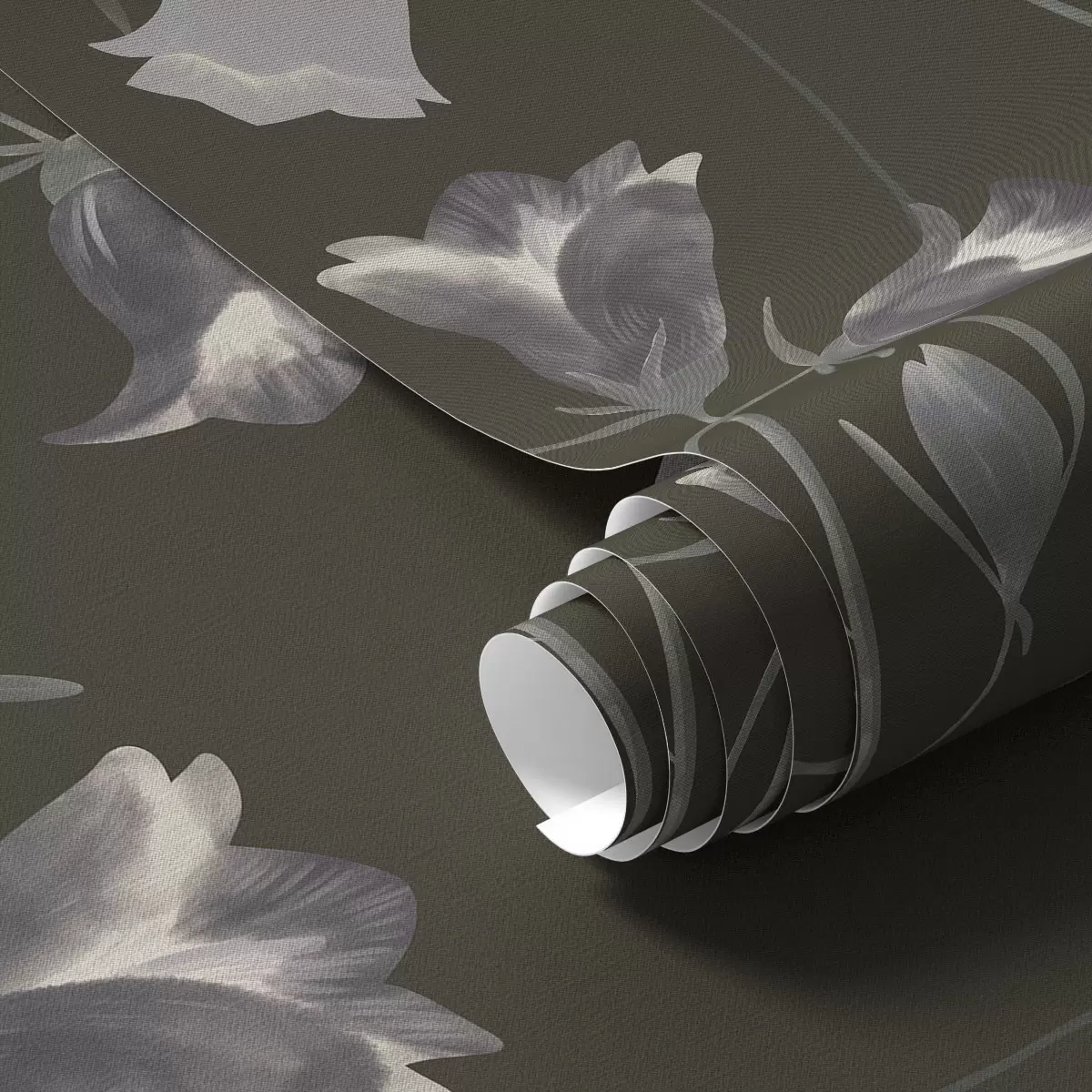 Papel pintado Flores grises en forma de campana sobre fondo oscuro Nr. a01119v1