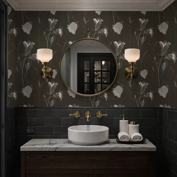 Papel pintado Flores grises en forma de campana sobre fondo oscuro Nr. a01119v1