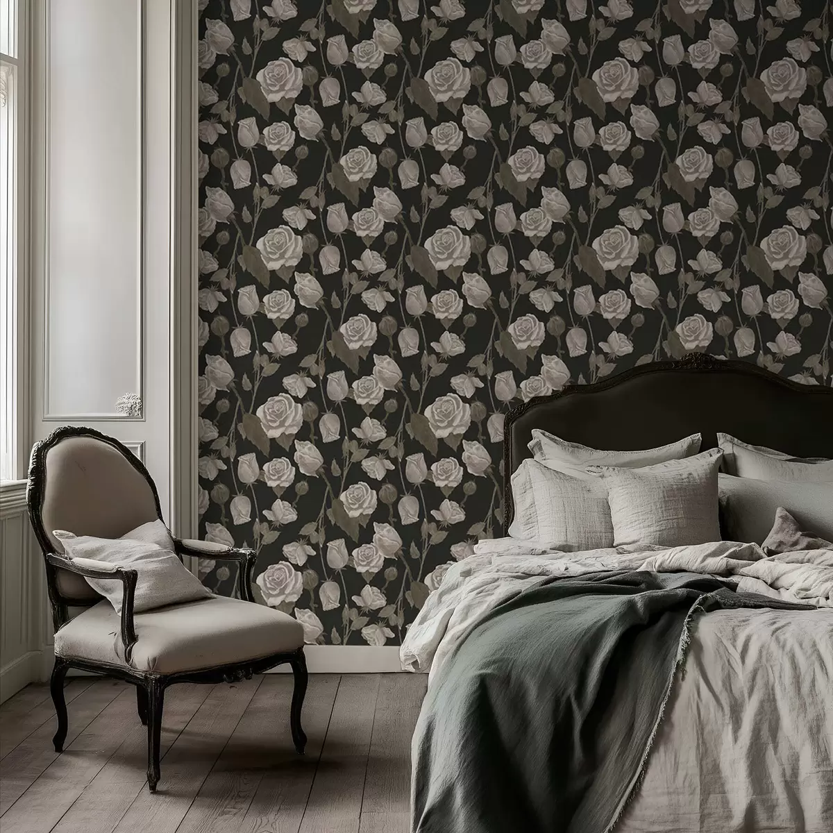 Papel pintado Estampado floral con rosas sobre fondo oscuro Nr. a01123
