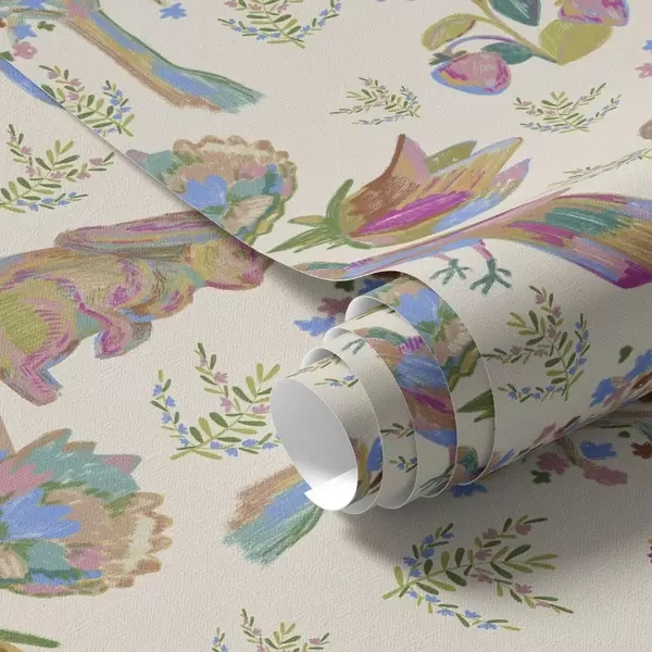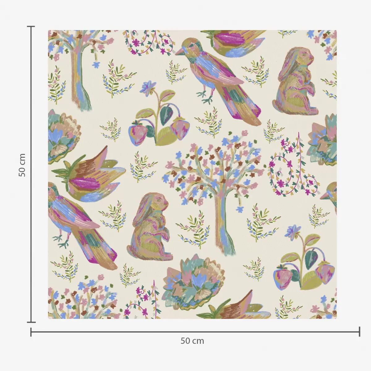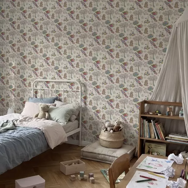 Papel pintado Colorido estampado infantil con pájaros y conejos. Nr. a01127