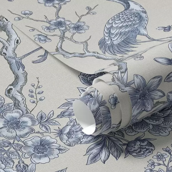 Papel pintado Adorno floral azul con un pájaro y ramas Nr. a01132