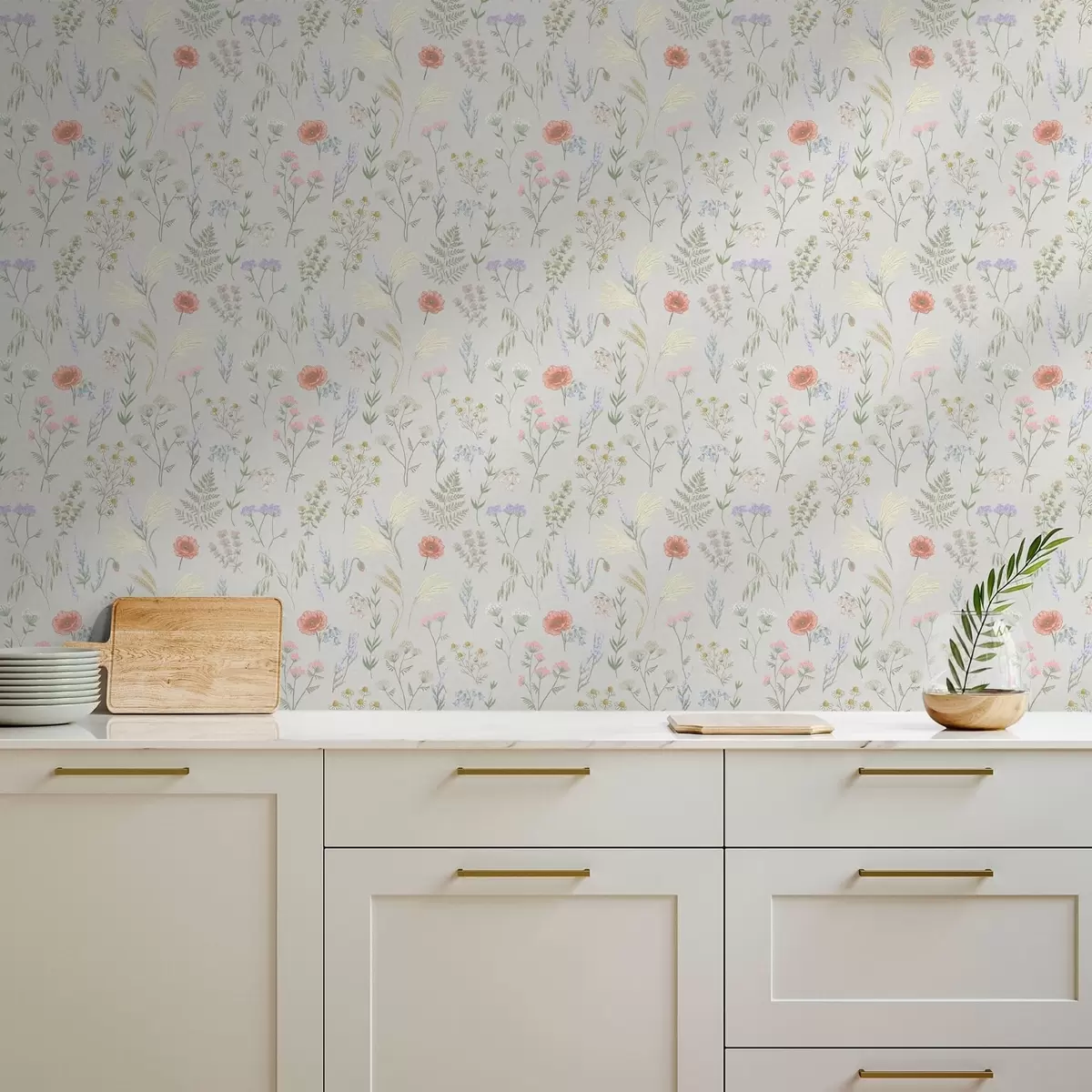 Papel pintado Delikado estampado de flores silvestres sobre fondo claro Nr. a01152
