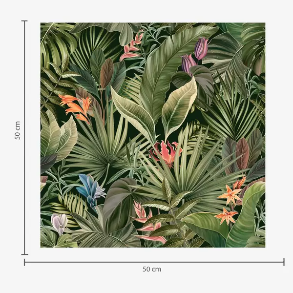 Papel pintado Hojas tropicales con flores sobre fondo oscuro Nr. a01153