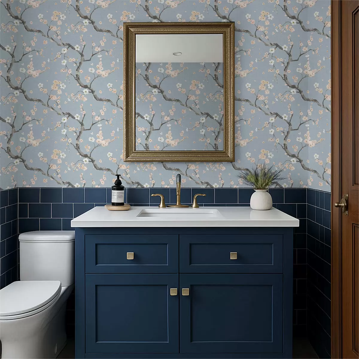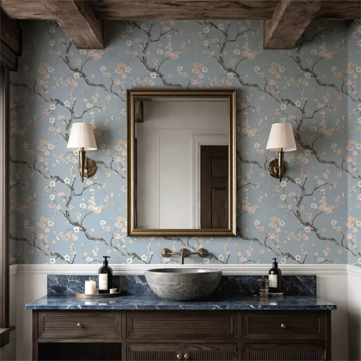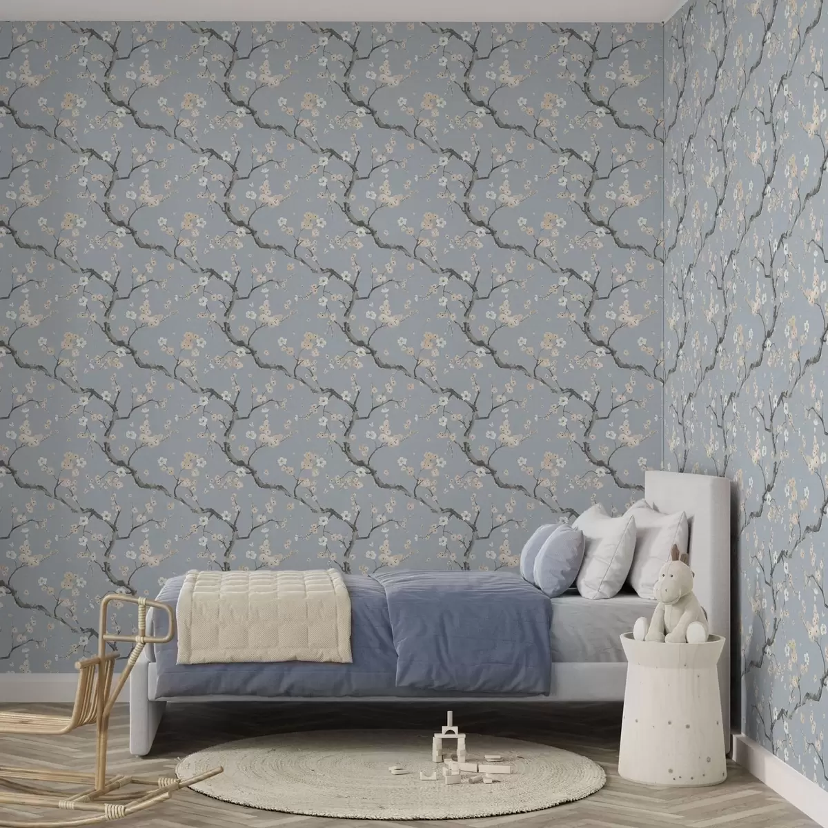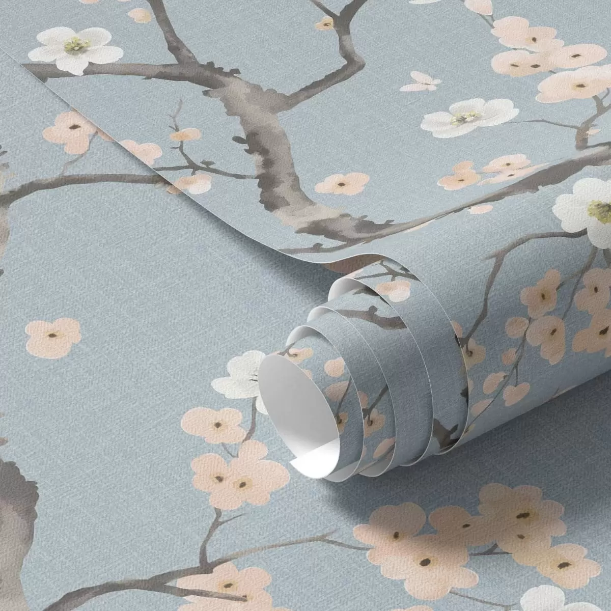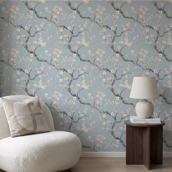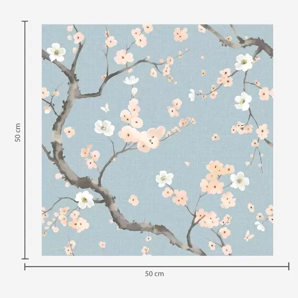 Papel pintado Ramas con flores sobre fondo azul Nr. a01155