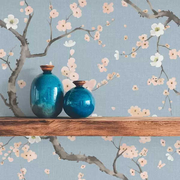 Papel pintado Ramas con flores sobre fondo azul Nr. a01155