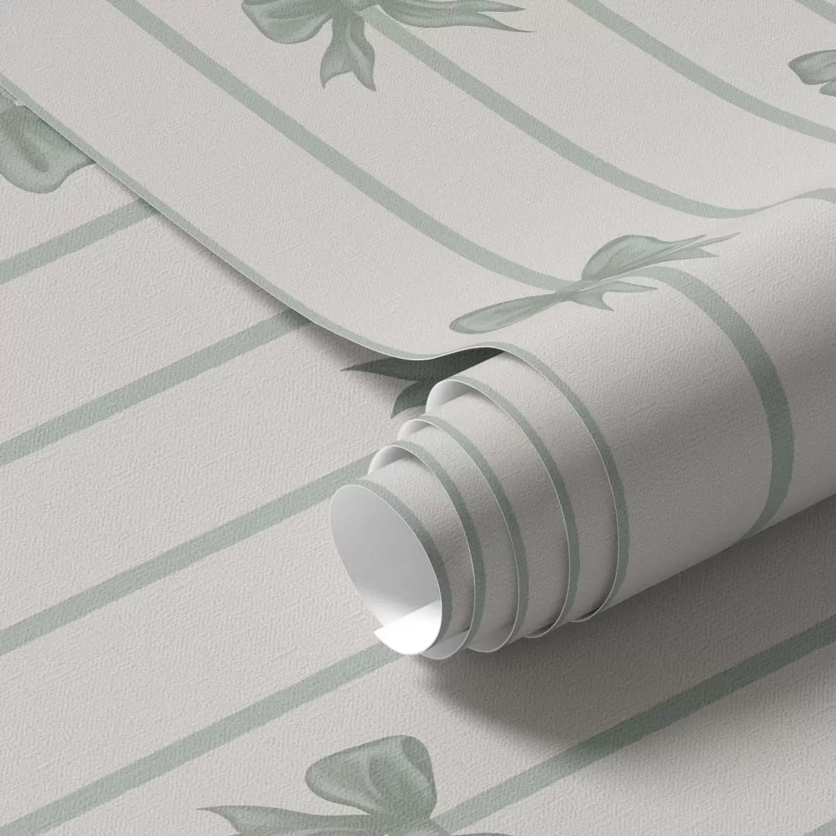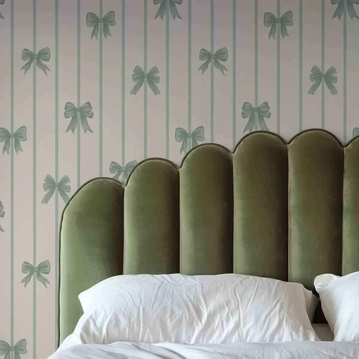 Papel pintado Lazos verdes sobre un fondo beige a rayas Nr. a01162v1