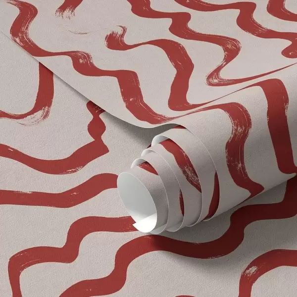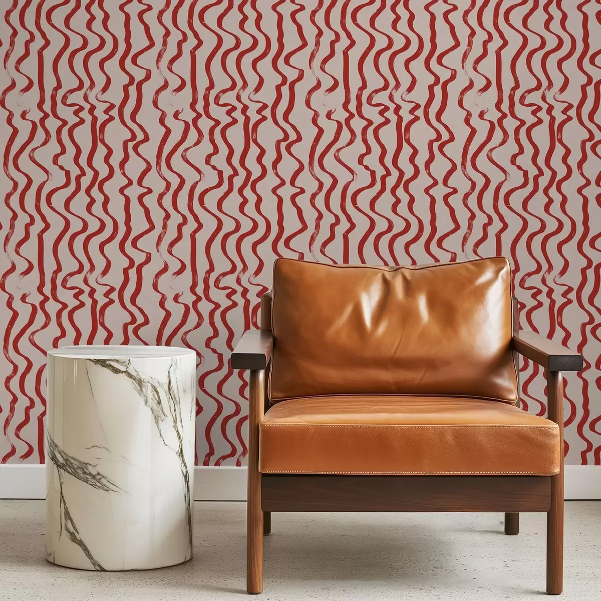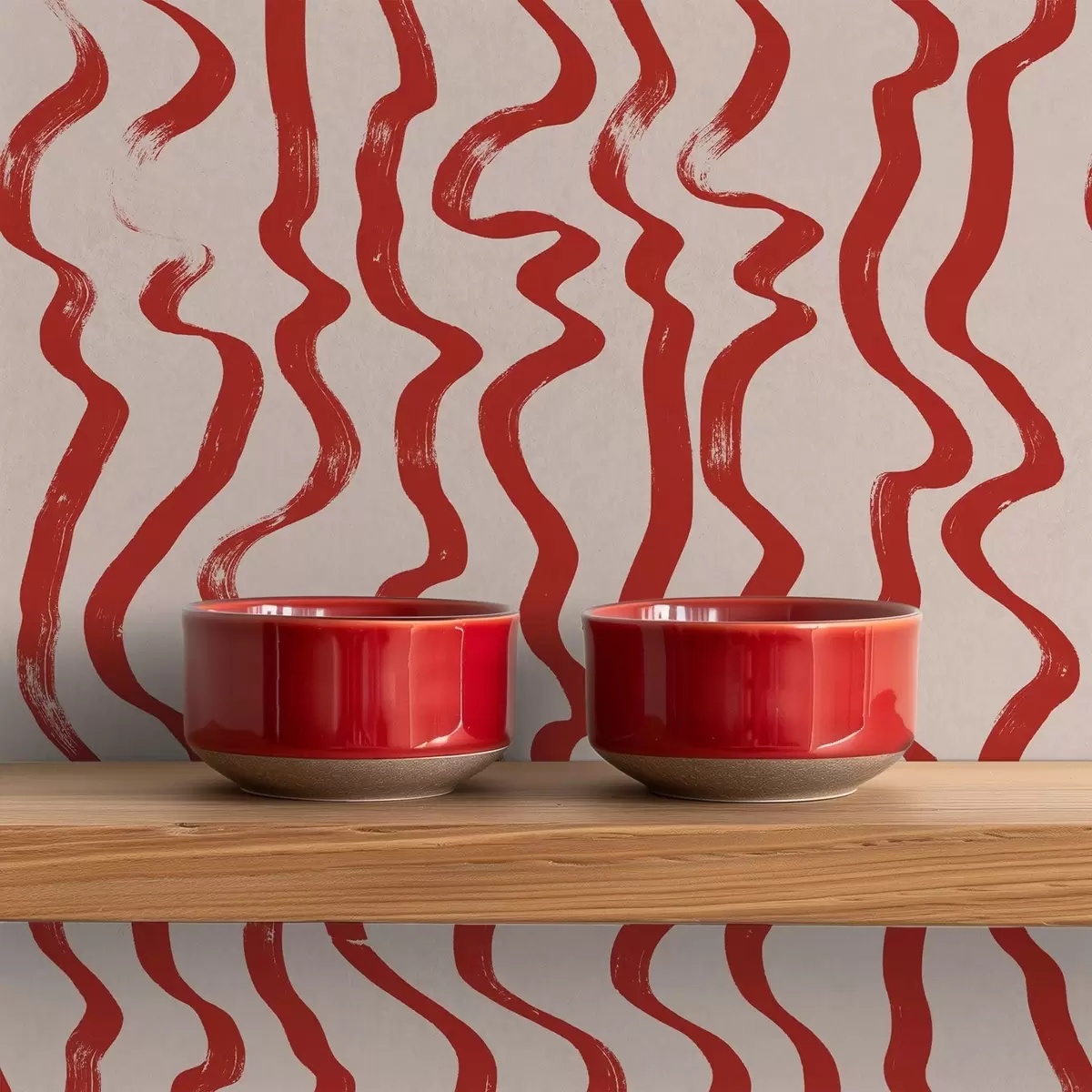 Papel pintado Líneas onduladas rojas sobre fondo claro Nr. a01168