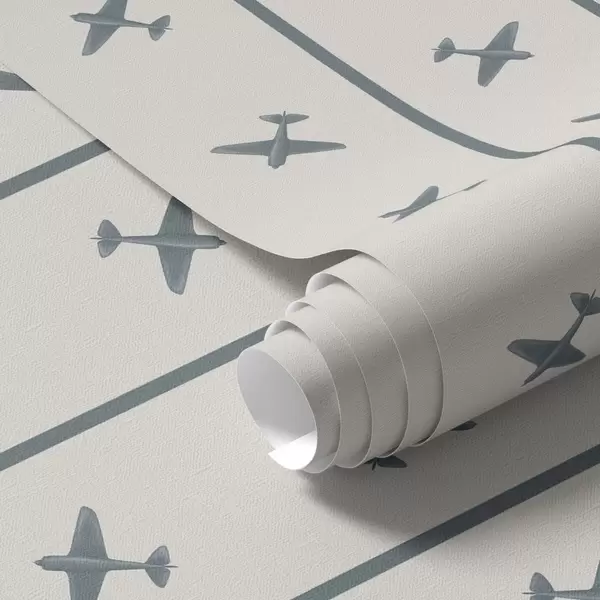 Papel pintado Aviones con diseño a rayas y detalles en azul Nr. a01169