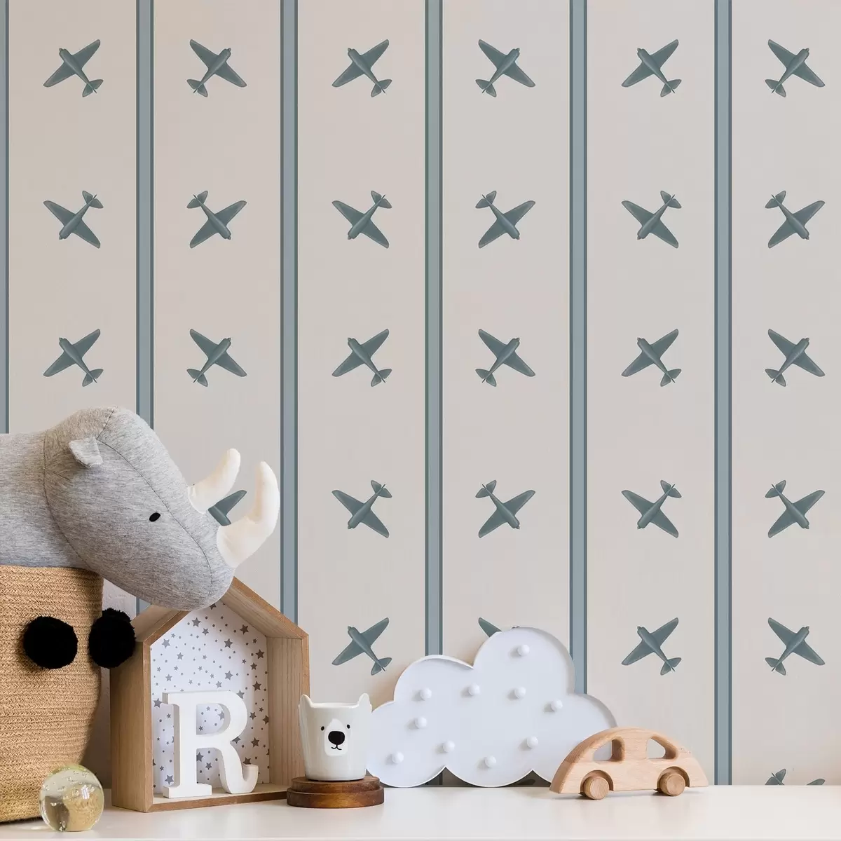 Papel pintado Aviones con un diseño a rayas azules Nr. a01170