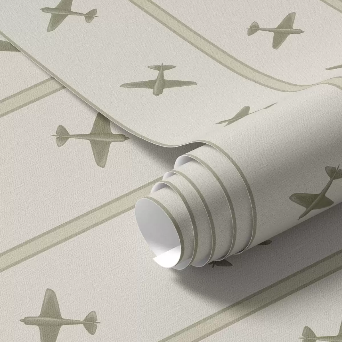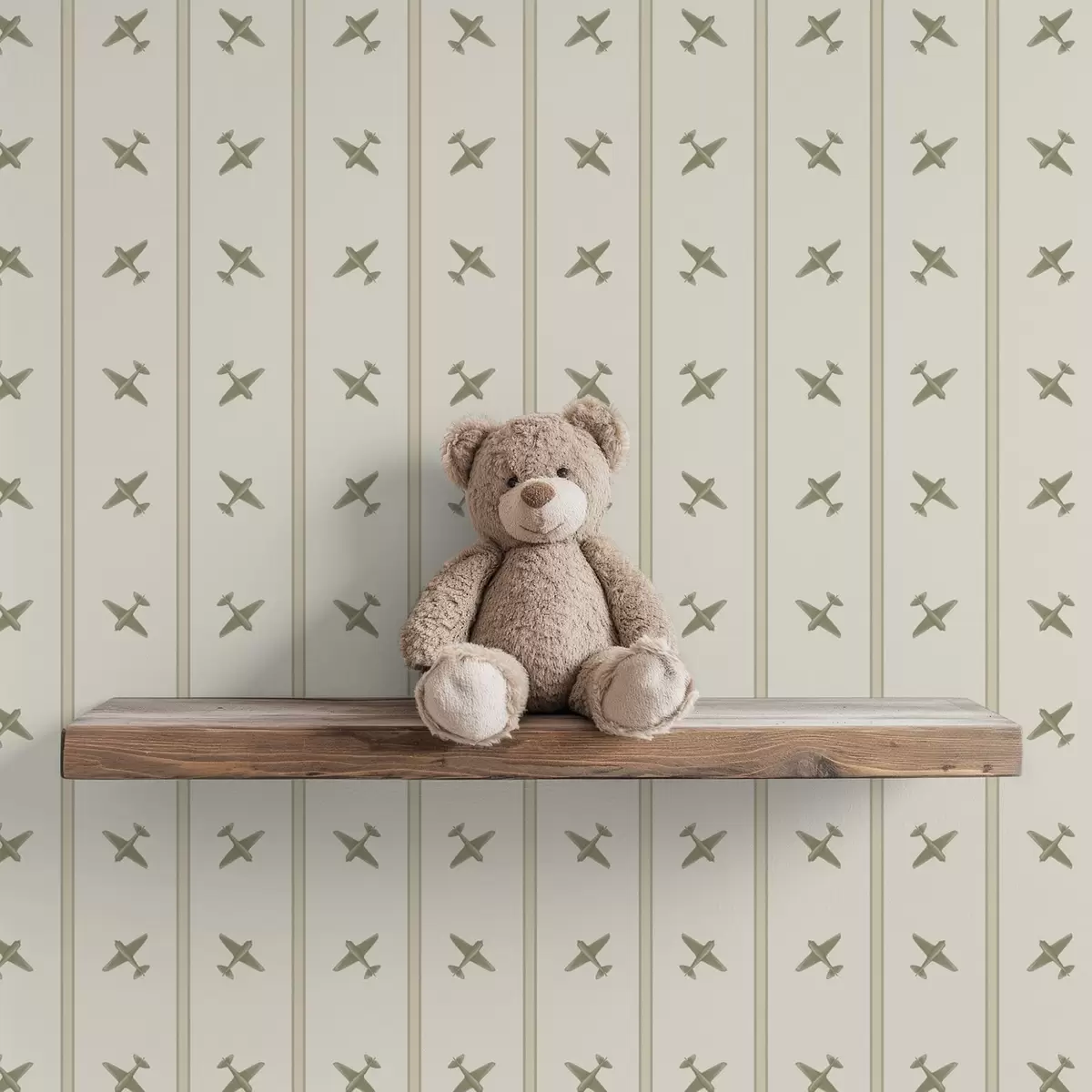 Papel pintado Aviones con un diseño a rayas en tonos oliva Nr. a01170v2