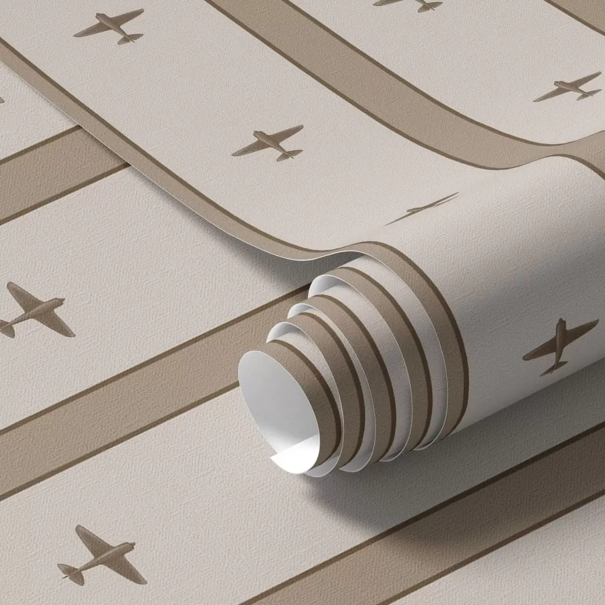 Papel pintado Aviones pequeños a rayas sobre fondo marrón Nr. a01171v2