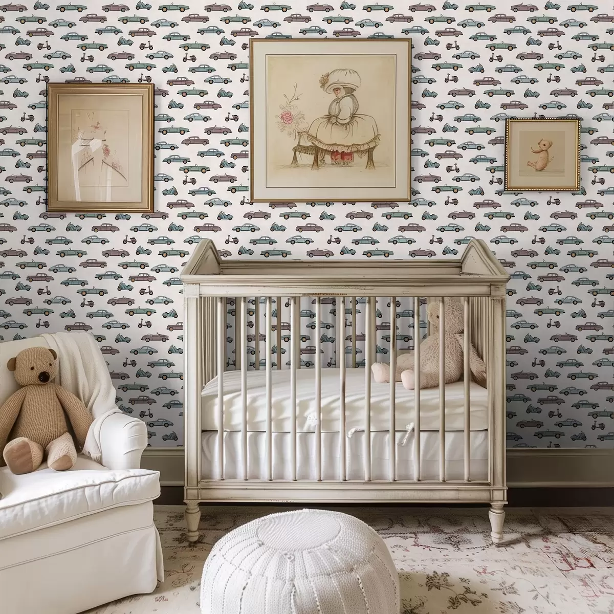 Papel pintado Coches y motos retro sobre fondo claro Nr. a01172