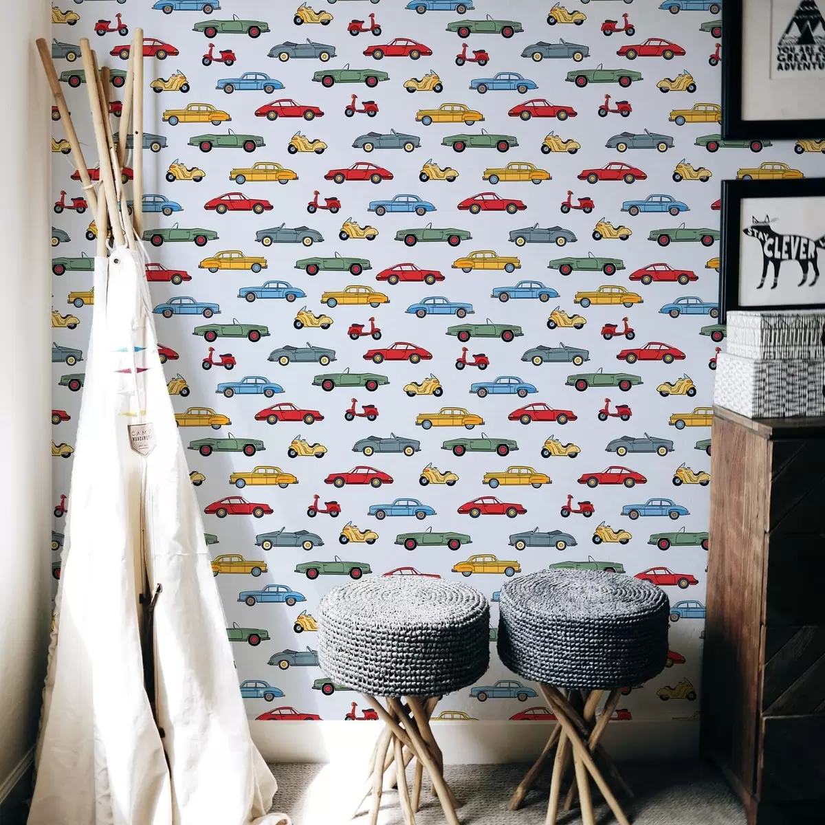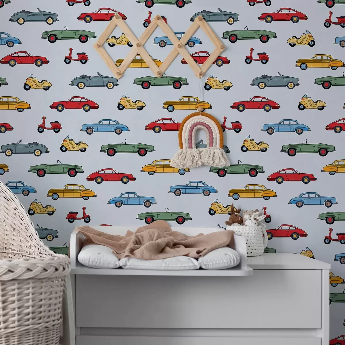 Papel pintado Coches y motos retro sobre fondo azul Nr. a01172v2