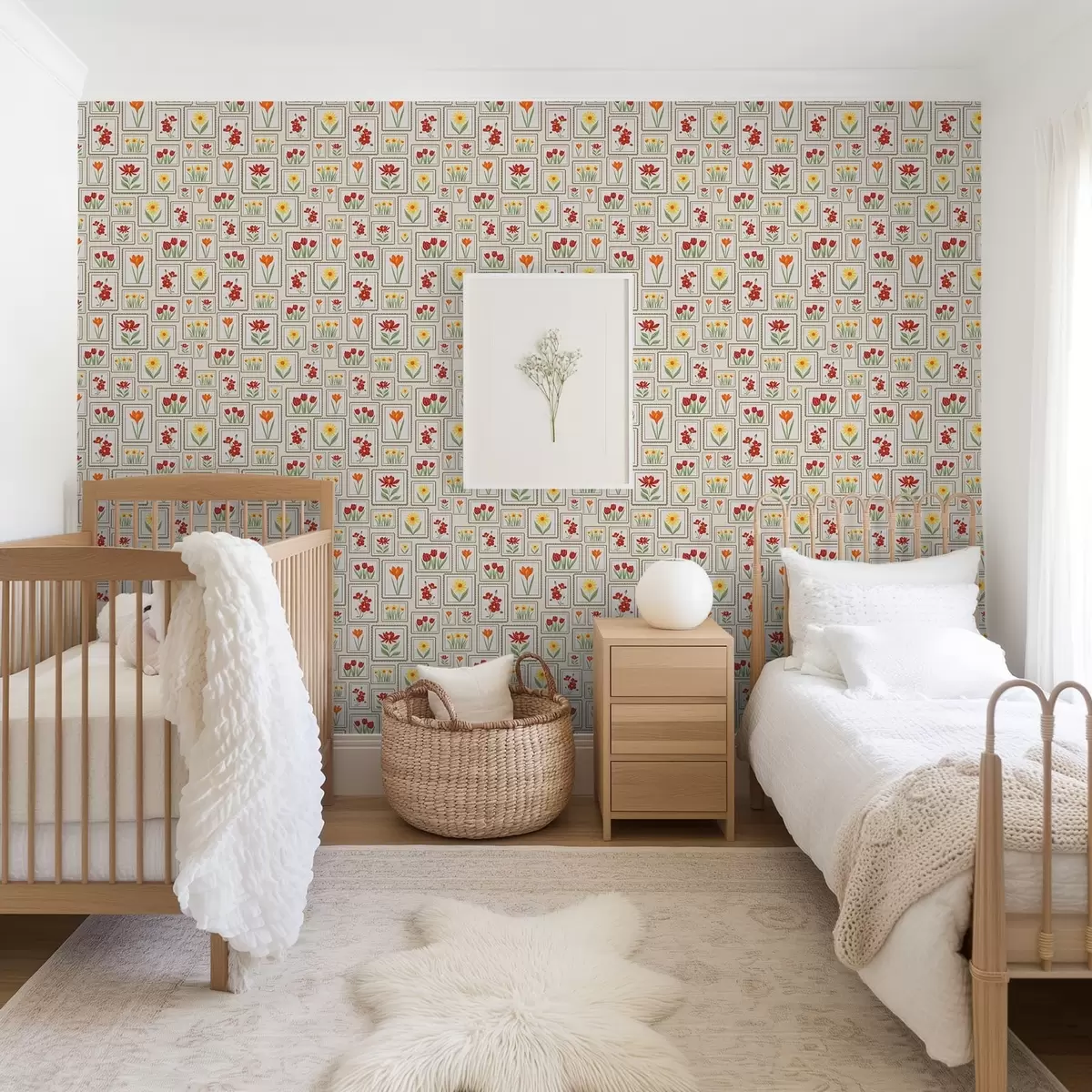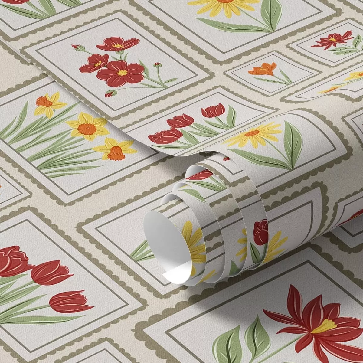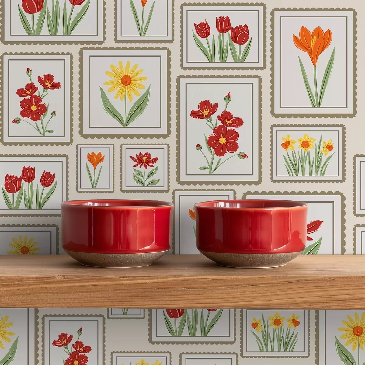 Papel pintado Ilustraciones florales enmarcadas en tonos cálidos Nr. a01173