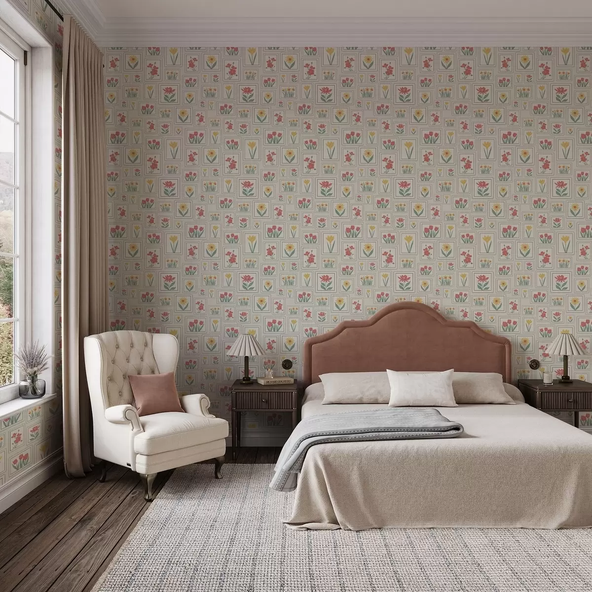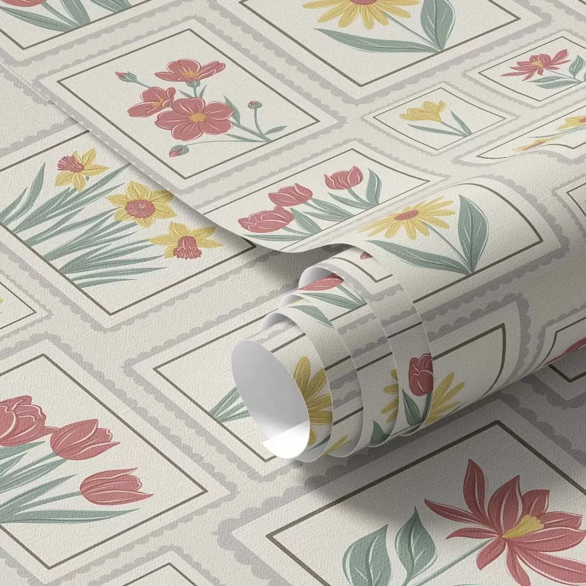 Papel pintado Ilustraciones florales enmarcadas sobre fondo claro Nr. a01173v1