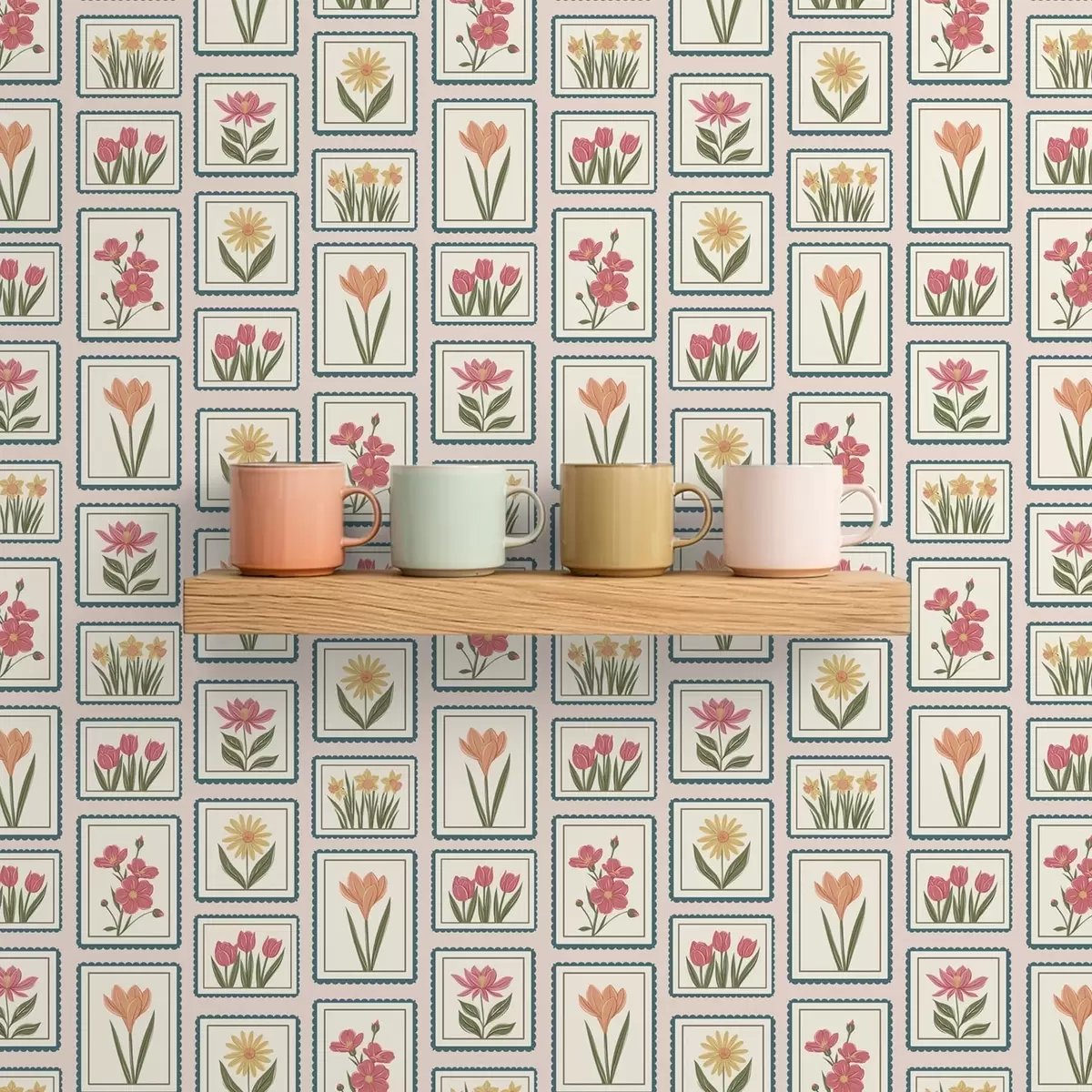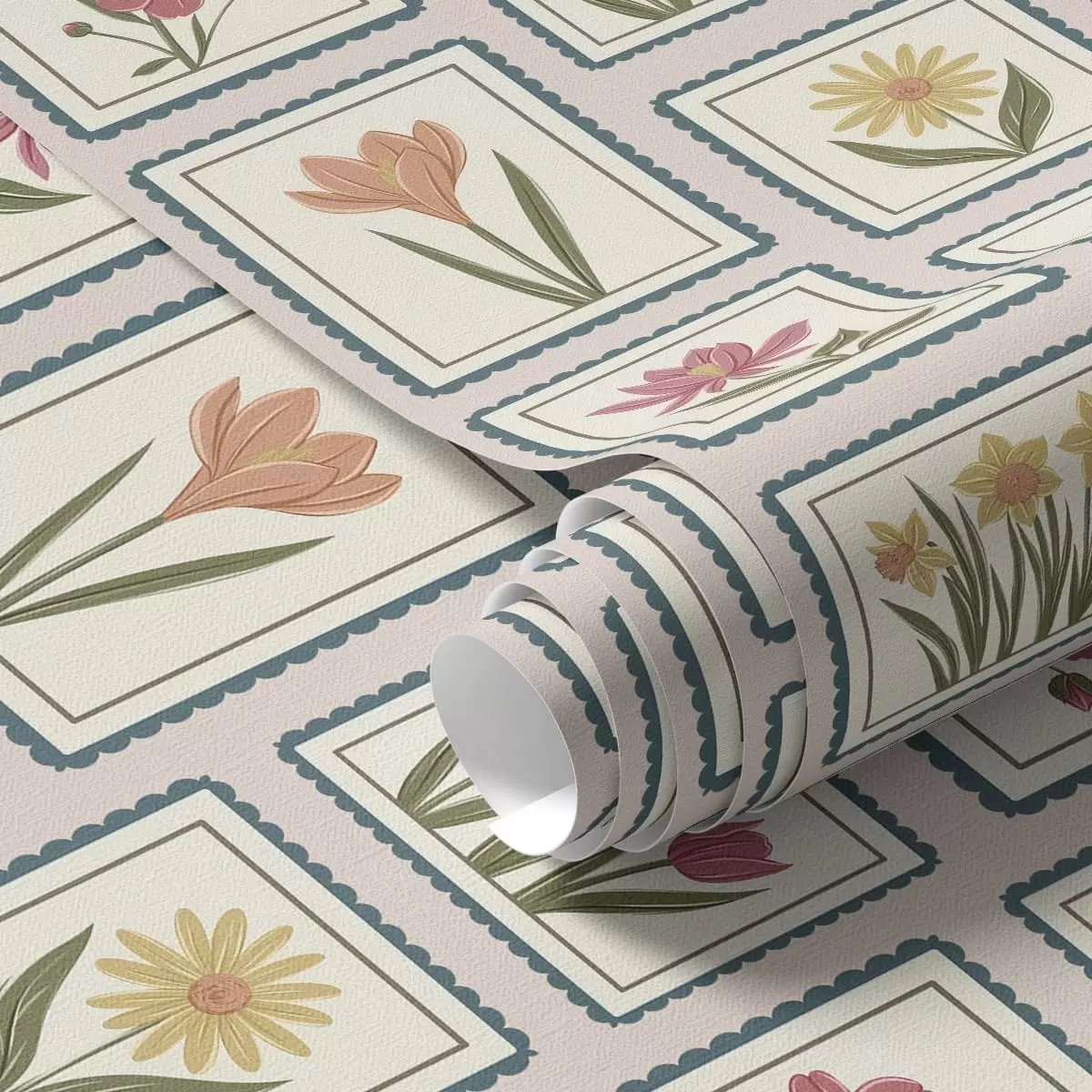 Papel pintado Ilustraciones florales enmarcadas con bordes Nr. a01174