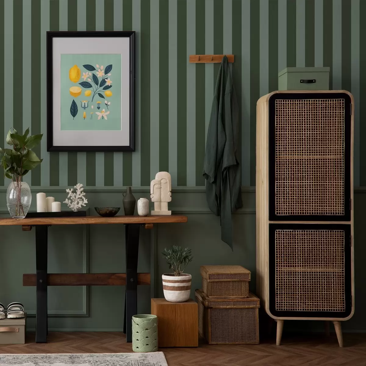 Papel pintado Rayas verticales de color verde oscuro y claro Nr. a01179v4