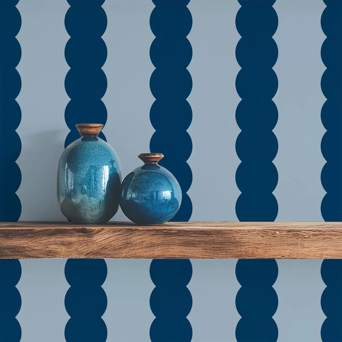 Papel pintado Rayas onduladas de color azul oscuro en estilo minimalista Nr. a01182v3